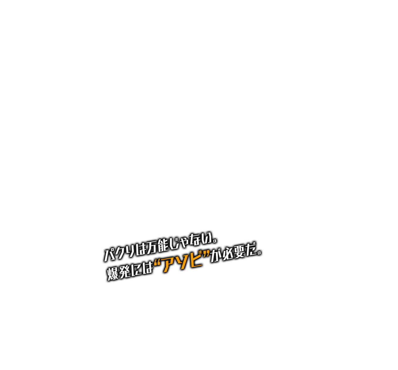 パクるだけでは飽き足らず、パクッてパクッて組み合わせてひと工夫し、新しいモノを生み出す特殊な技能も持っている。 一発逆転のアブナイ施策を好み、バナー原稿を作るときも“クライアントのOKラインギリギリ”を常に狙う。御社のその変なバナー、作った犯人は馬淵かもしれません。